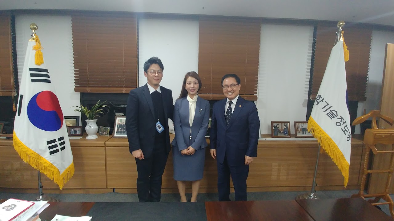 After two years, I became a secretary to a new Minister of Science and ICT, His Excellency Young Min You. He chose me as an accompanying secretary and gave me several lessons on innovation policy. I could learn a lot from his insightful decision-making, and he sometimes gave me precious advice on developing my research interest. Thankfully, he officiated at my marriage as well. My wife and I will never forget his meaningful comments on us (The third picture was taken when he invited my wife to the office). He encouraged me to apply to overseas studies, and finally, I came to start my Ph.D study.